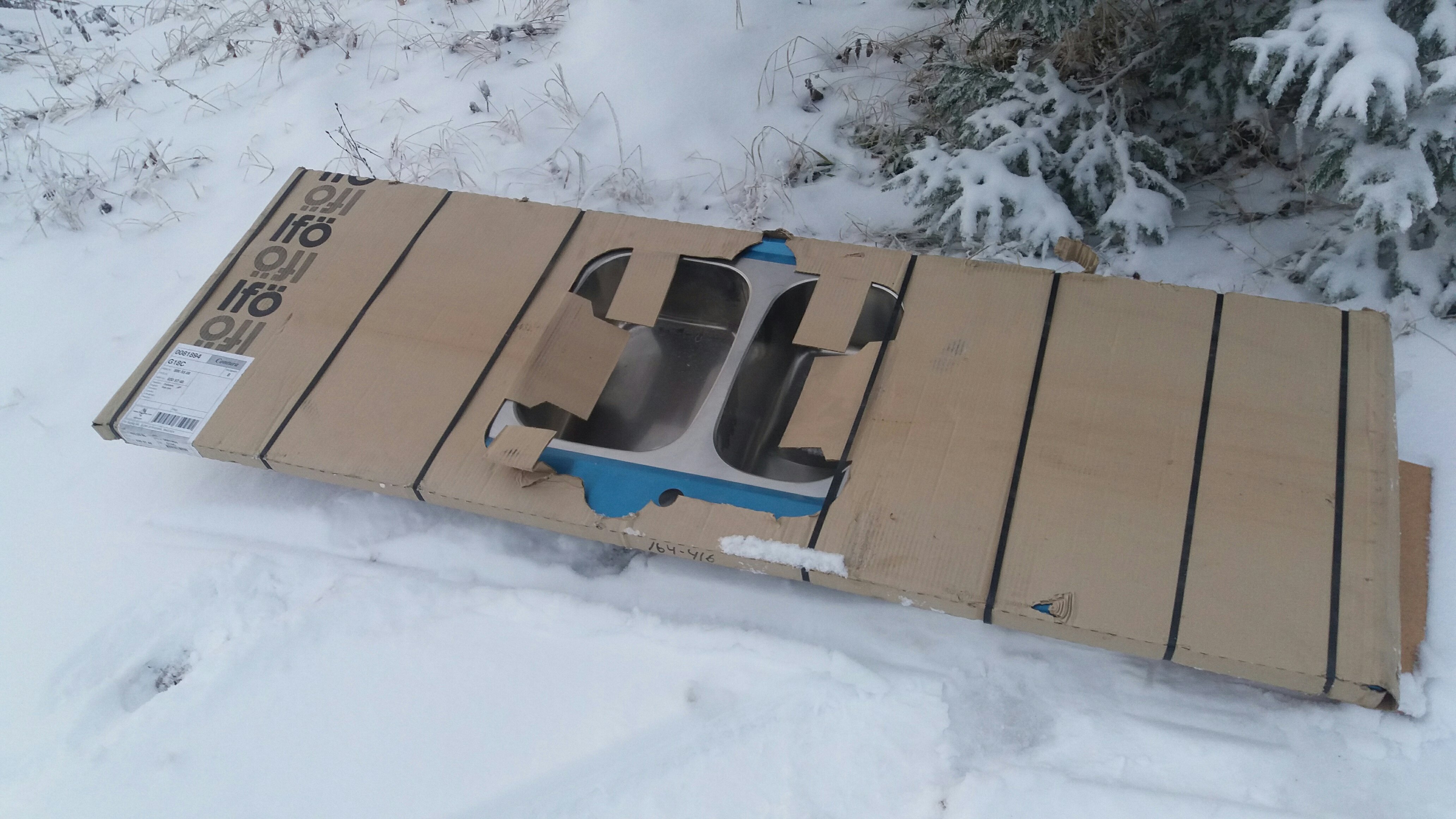Glada i hågen kör vi upp mot utlämningsstället, glada utan en föraning av vad som väntade. Innan jag hämtade upp släpvagnen och medhjälparna blev det en sväng till byggbolaget för att hämta 150 kg betong som skulle användas till att gjuta plattan där vedspisen ska stå.