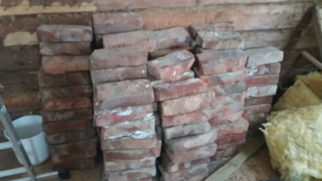 Vi var inne på att få tag på tegelstenar och det fanns det. En hel pall med tegelstenar som stadigt ökade i priset. Men där fanns även en pall med tegelpannor och under dem låg helt enkelt fantastiska tegelstenar. Handgjorda men med en underbar yta.
