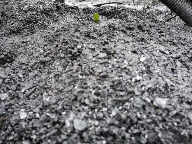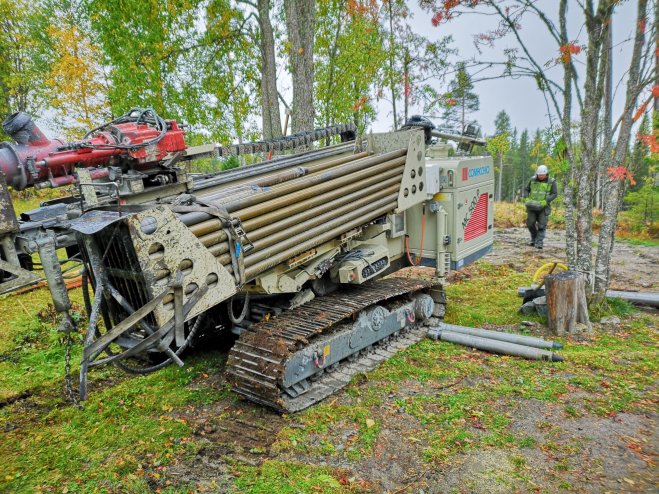Redan efter ca 2 meter stöter vi på berget. Blir glad eftersom det trots allt är en ekonomisk fråga också det blir dyrare ju längre ner innan berget man måste borra. Här kan man verkligen konstatera att berget består av skiffer. Ett svart pulver sprider ut sig över marken. När de frågar mig vart de kan spruta ut slaggen trodde jag inte att det skulle bli så mycket. Tänk vad man får lära sig