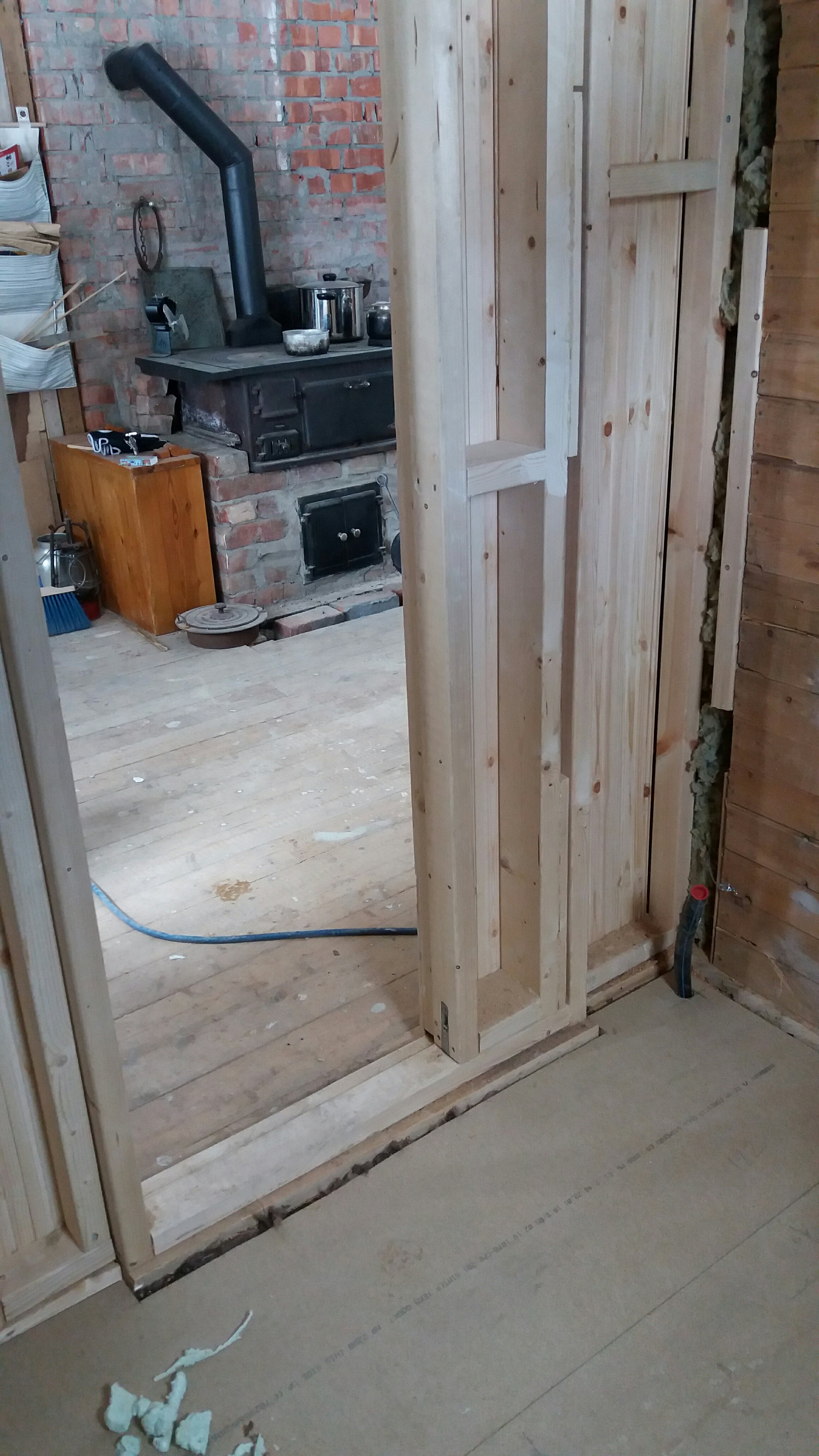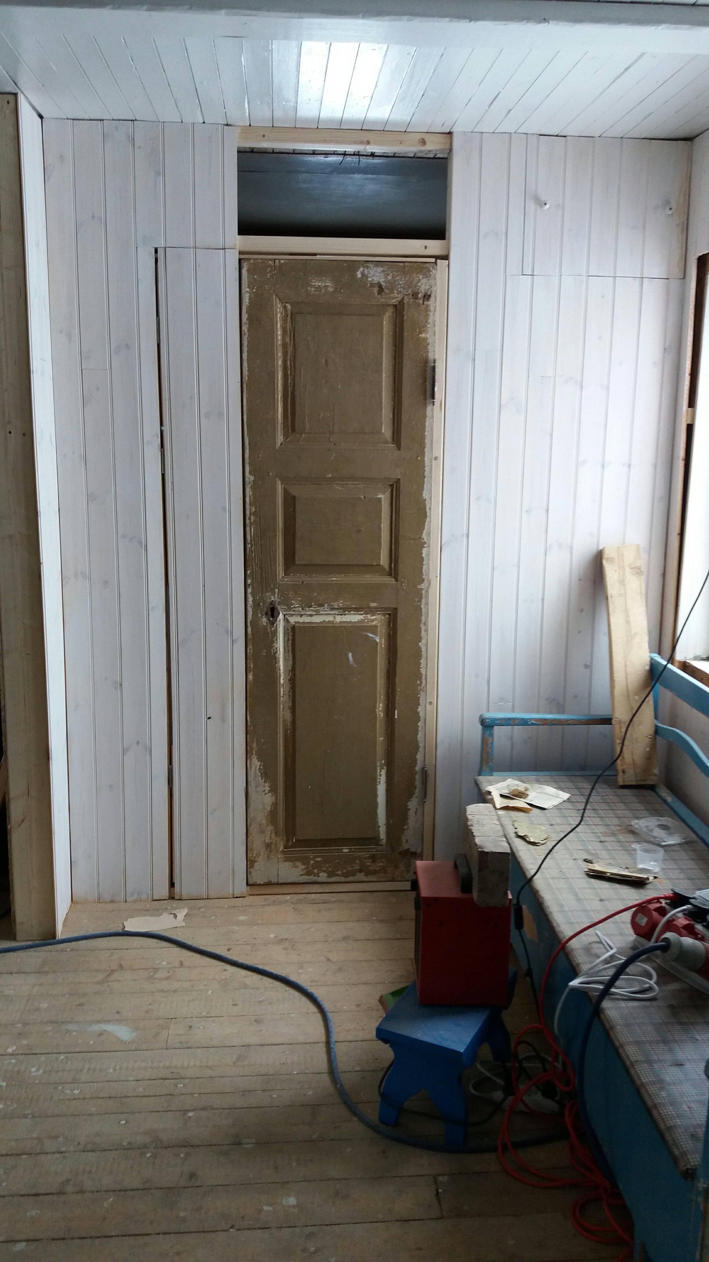 Det fick bli en ”hemlig” dörr på 20 cm som ska döljas med lister, ovanpå dörren blir det ett fönster men mer om det i ett senare inlägg.