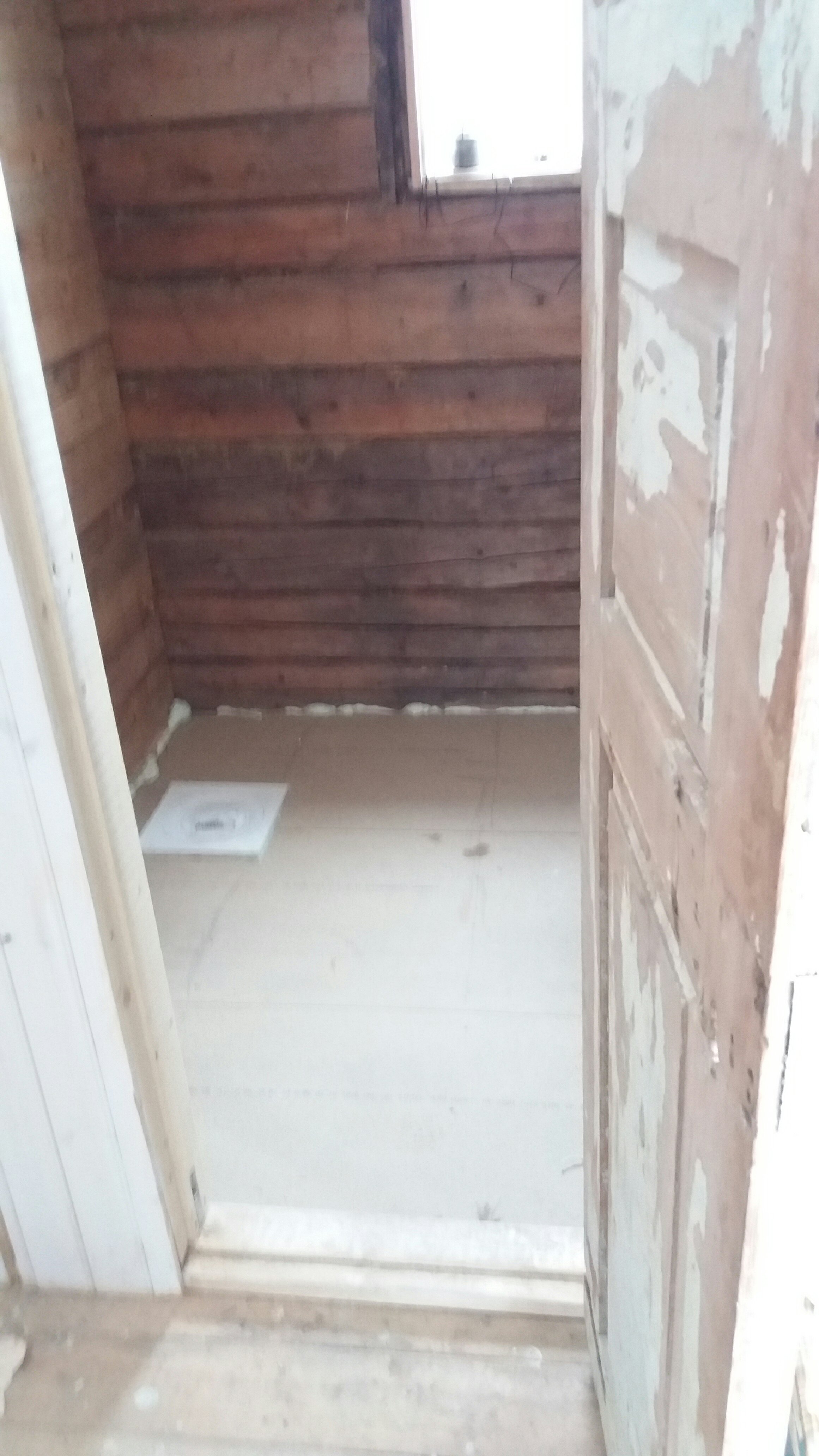 Jag skulle ta tag i det som skall bli vårt badrum. Efter att ha skapat den nya väggen, byggt en hemlig dörr och fått in den gamla dörren, så var det äntligen dags för golvet och det efterlängtade avloppet. Allt gick så smidig.