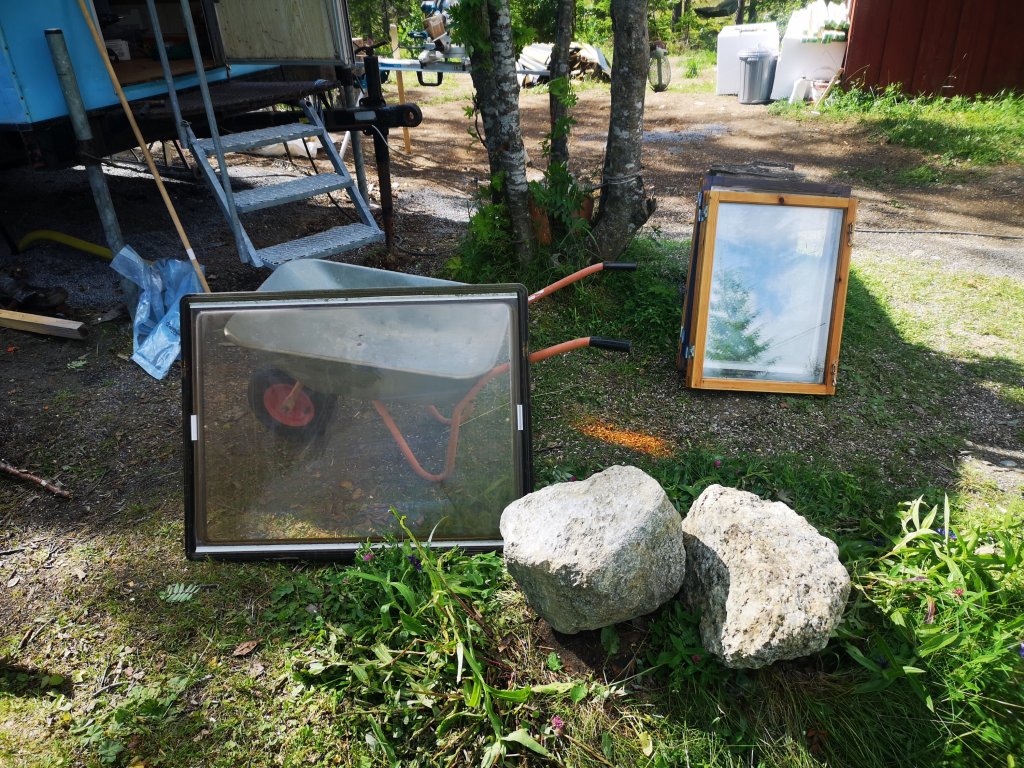 Vi fick tag på fönster genom en lyckoträff. Någonting helt annat än vad vi hade tänkt men ändå så rätt när de väl var där och fyllde sitt rum. Nu börjar stugan så sakta att transformeras till någonting helt annat än vad det var tänkt, eller…