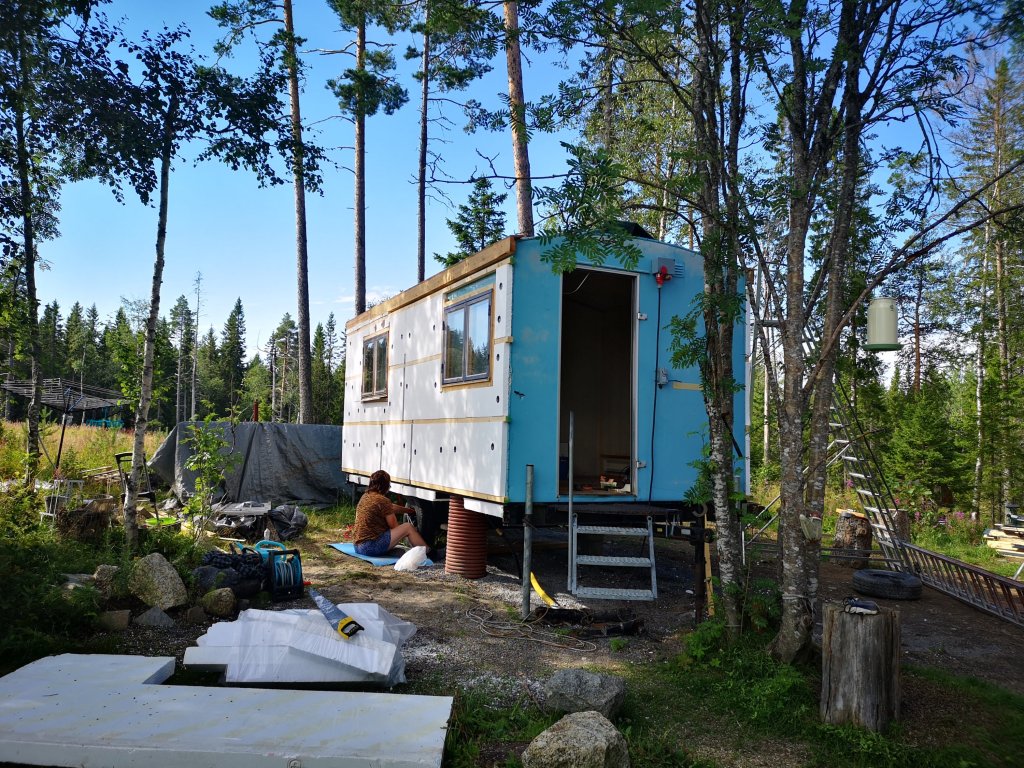 Under gårdagen var jag själv där och arbetade under hela dagen. Det var en del fönster som skulle brädfodras , så långt vi kan göra för stunden, och sättas in. Under hela dagen hade jag en känsla av att huset ville prata med mig. Att det accepterade den nya kostymen. Vet att det låter lite märkligt och flummigt men det gjorde mig glad. Att gå igen våra rum, sakta, för att ta in känslan och vibrationerna av varje enskild del som vi gjort fyllde mig med tacksamhet och glädje.