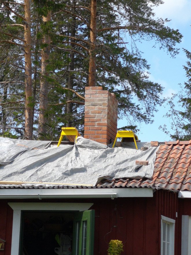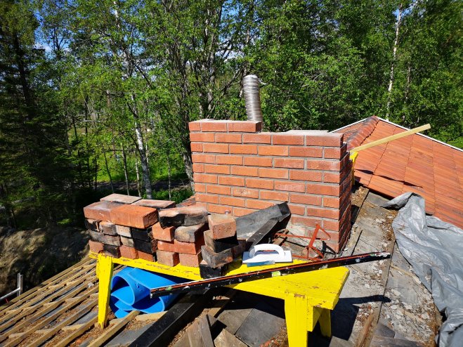 Med hjälp av kameran så fotograferade jag varje varv så att kunde mura tillbaka dem på samma sätt som de låg men även då vi behövde förlänga skorstenen, fortsätta på ett korrekt sätt