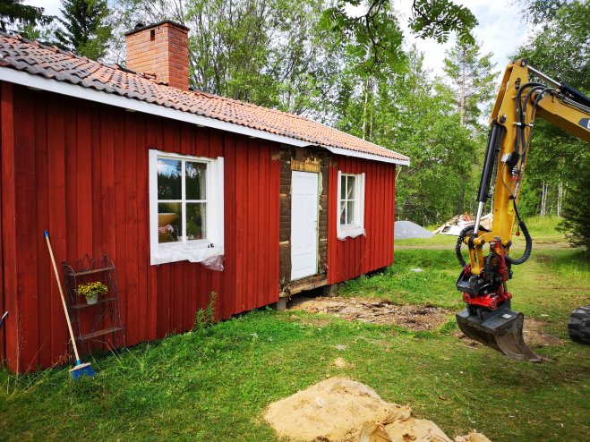 Jag har fått lära mig att en grävmaskin verkligen kan användas till det mesta. Återigen är det så bra att ha proffs inom familjen. Ingenting är omöjligt
