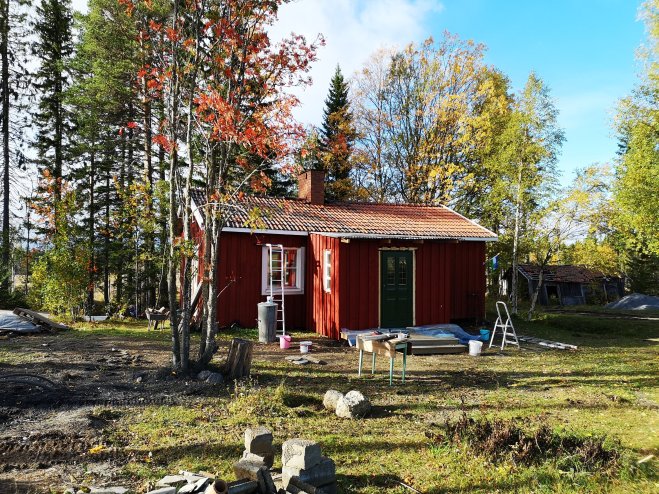 Vår ursprungliga tanke var att göra en kallfarstu av det hela. Så vi lade ingen isolering i golvet. Någonting som vi idag anser att det var ett litet för hastigt beslut. Vi kommer att isolera väggarna samt göra golven underifrån.