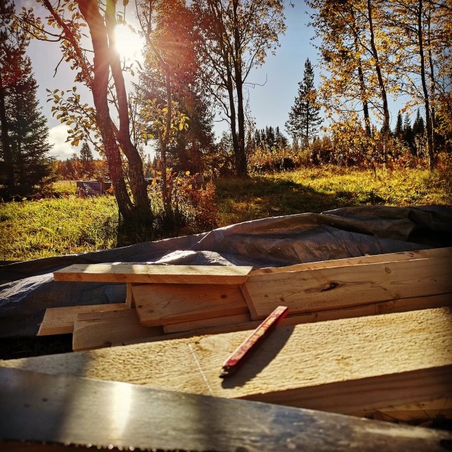 Bitte fick den otroliga förmånen att gjuta plintarna och fästa bärlinan en helg då jag behagade att resa bort. Så skönt att komma tillbaka och allting var gjort