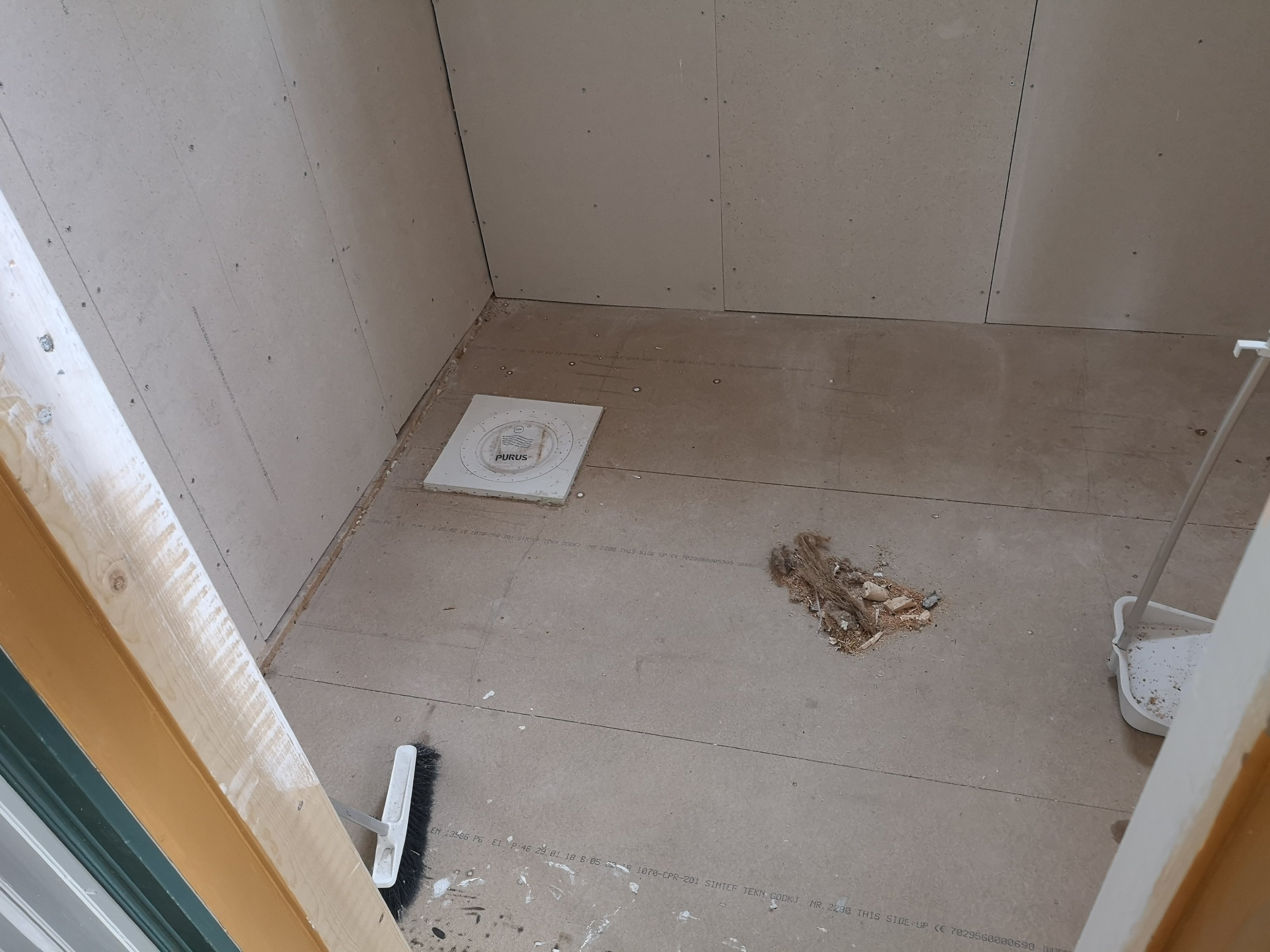 Vi hade redan på förhand beslutat var borrhålet skulle vara. Alla nödvändiga rör grävdes ned och in i huset.